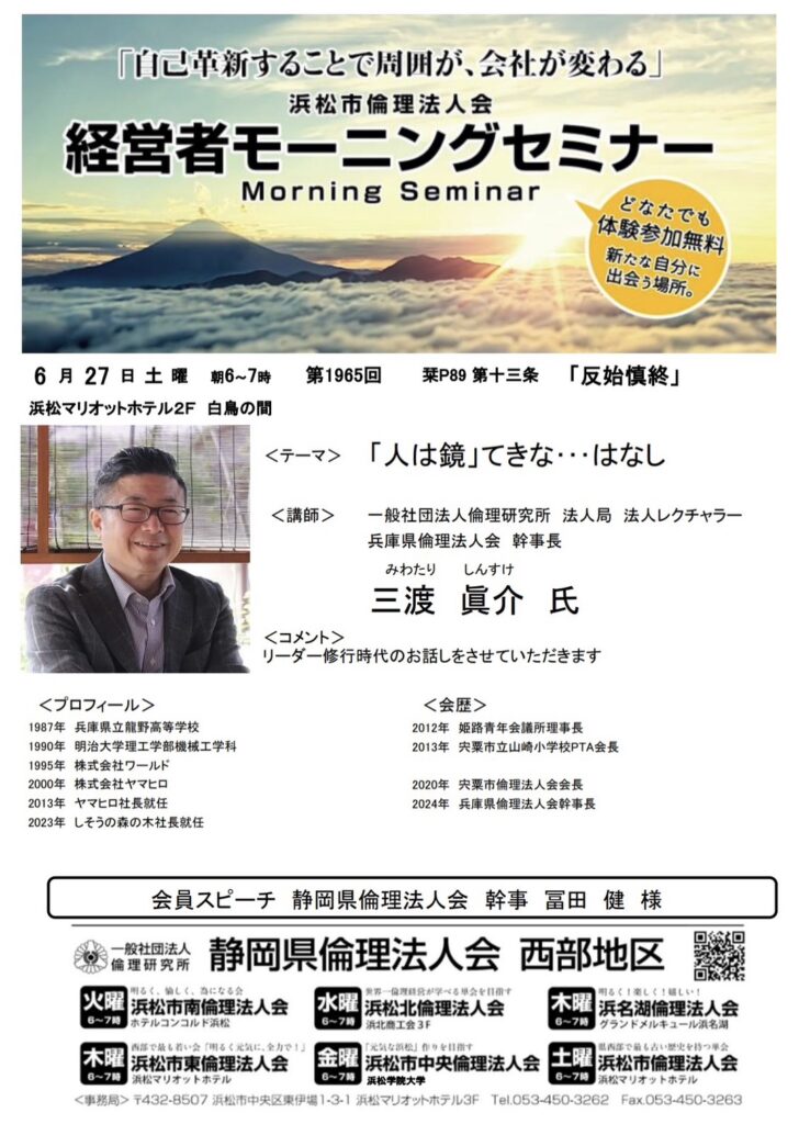 浜松市倫理法人会 経営者モーニングセミナー